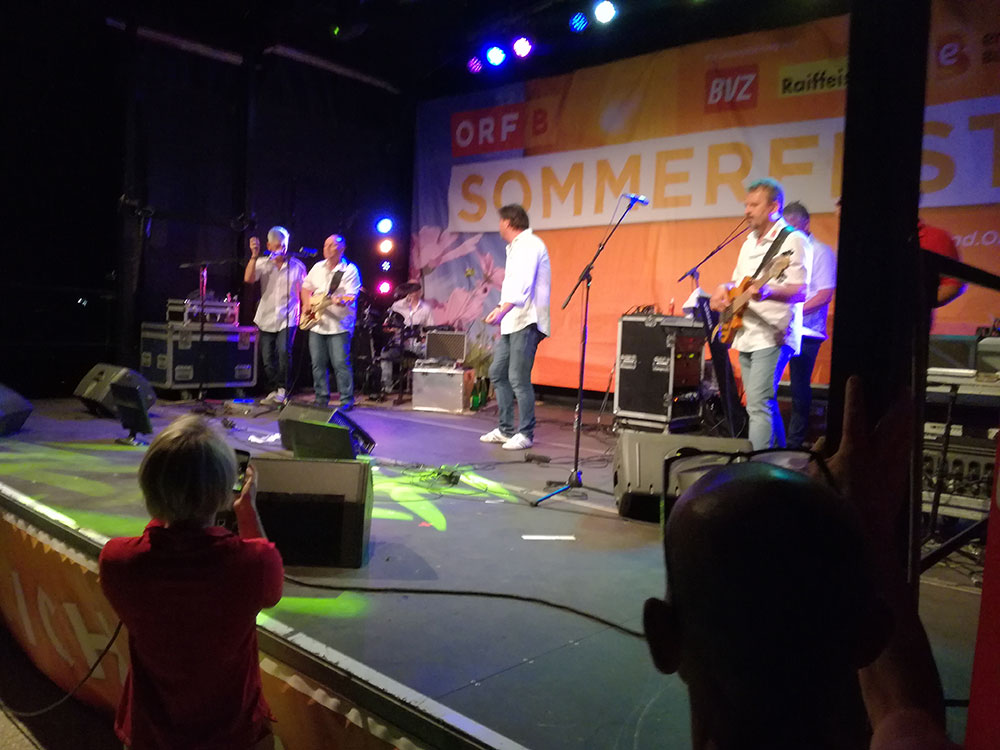 ORF Burgenland Sommerfest Sommer für Sommer zieht der ORF Burgenland mit den Sommerfesten durchs Land. In Oggau war man zum ersten mal und Udo hat dort auch sein erstes moderiert. Mit Liveeinstiegen in Burgenland Heute. Stargast war Udo Wenders, gespielt hat die Radio Burgenland Band und an die 1.000 Besucher feierten bei fantastischem Sommerwetter.